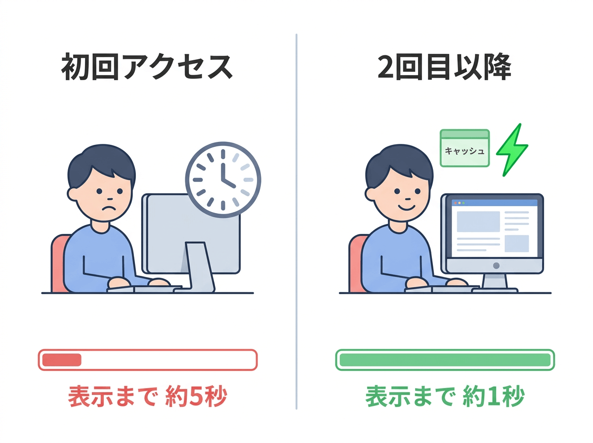 キャッシュとは、一度読み込んだデータを一時的に保存しておく仕組みです。