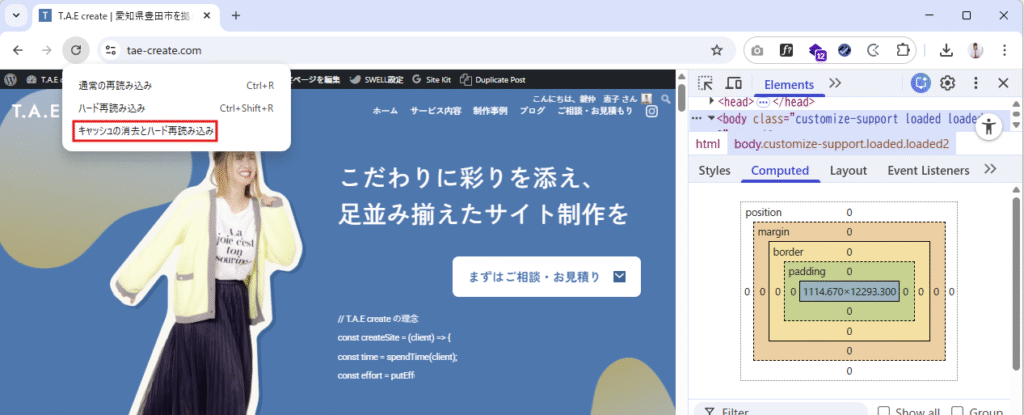 ホームページ制作の作業中は、毎回スーパーリロードをするのが手間に感じることもあります。そんなときは検証ツール(デベロッパーツール)の設定を使うのがオススメ!