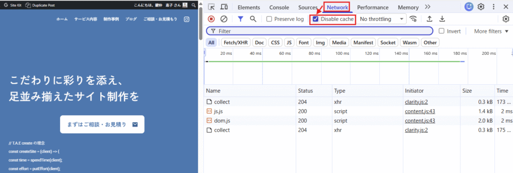制作中は検証ツールのDisable cacheをオンにしておくと、余計な混乱が減ります。ぜひ活用してみてください!