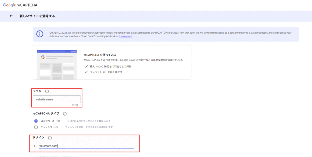 ステップ1:GoogleのreCAPTCHA管理ページにアクセス