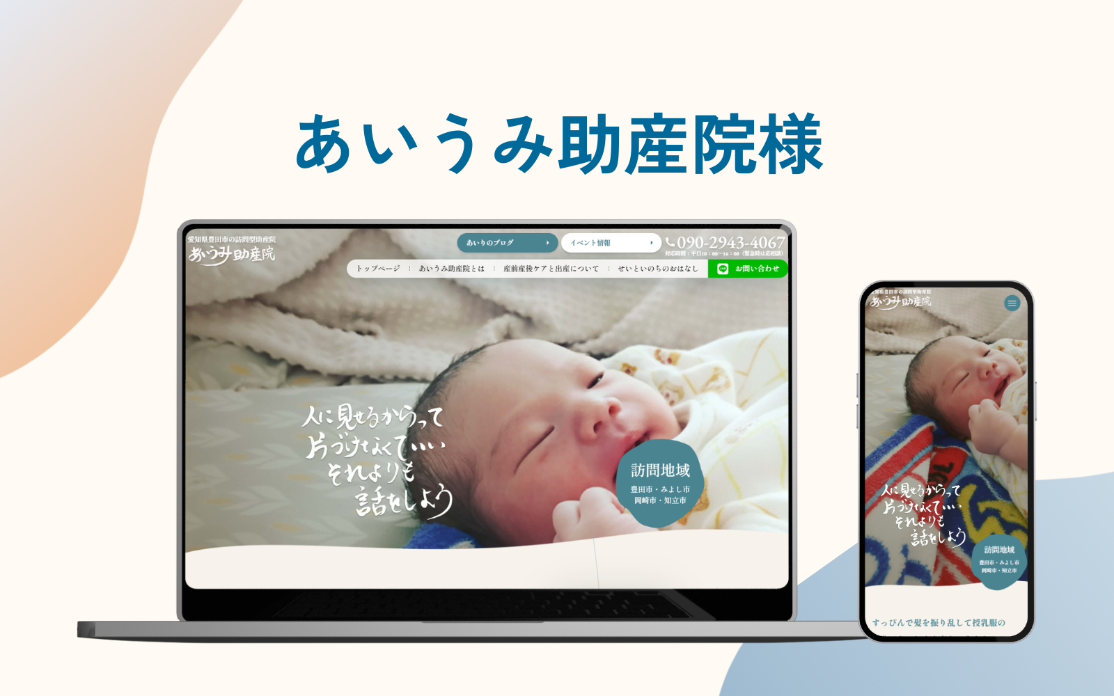 愛知県豊田市で訪問型助産師として活動されているあいうみ助産院様のサイトを制作させていただきました。