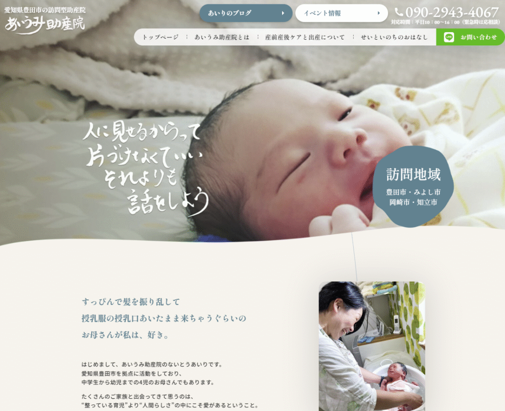 ママにとってのお母さんのような存在。愛知県豊田市のあいうみ助産院様のホームページ制作